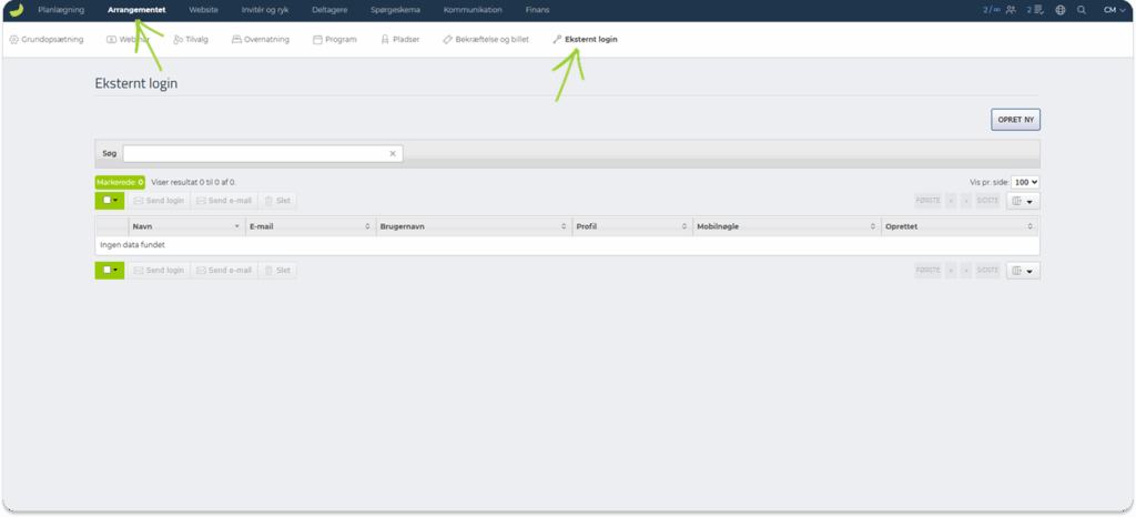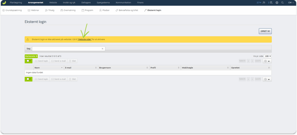 Hvis det eksterne login også skal kunne logge ind på dit arrangement via browser, kan du 👉 klikke her for en kort guide til aktivering af siden Eksternt login.