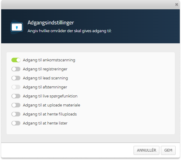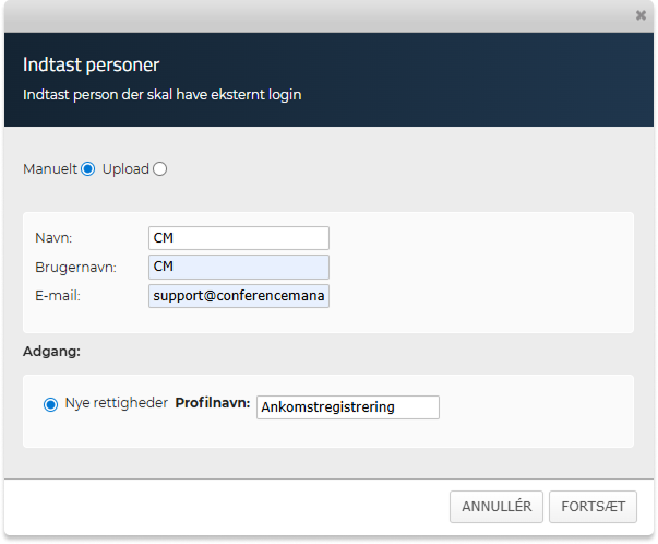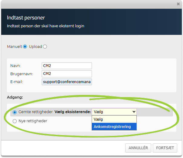 For at bruge CM Exhibition-appen til ankomstregistrering skal du oprette et eksternt login med adgang til ankomstregistrering.