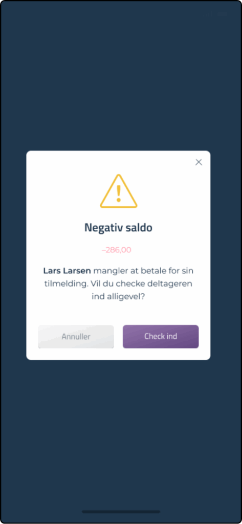 - Appen giver besked, hvis deltageren har udestående betalinger.