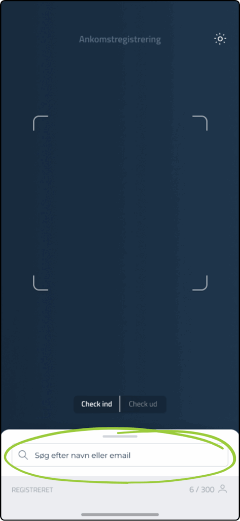 - Du kan swipe søgefeltet op for at se deltagere, der allerede er tjekket ind.