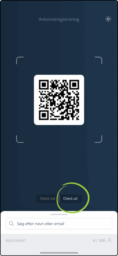 Hvis du vil tjekke deltagere ud igen, kan du skifte til Check ud nederst i appen og scanne dem (eller søge dem frem) igen for at tjekke dem ud.