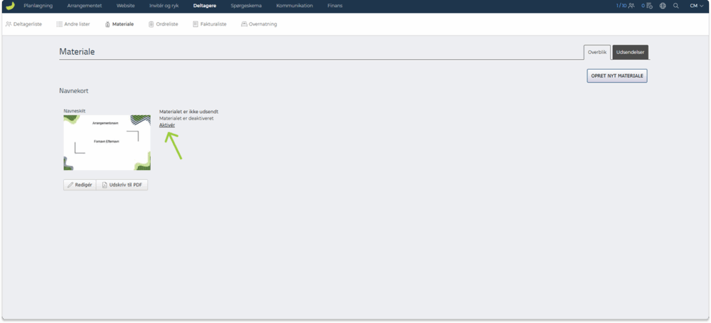 - Klik på Udskriv til PDF under navneskiltet i materialeoverblikket.