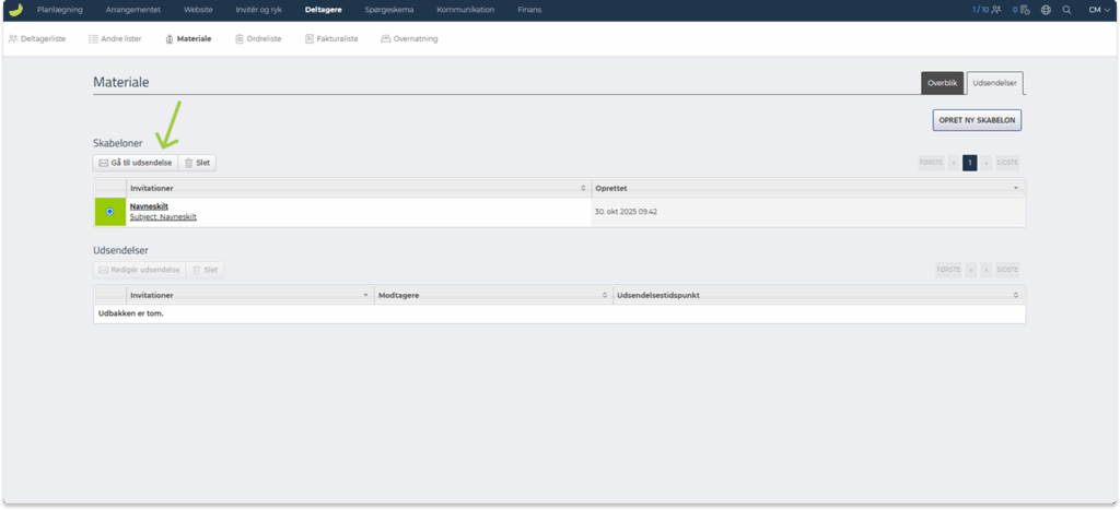 - Vælg skabelonen i oversigten, så den bliver grøn.