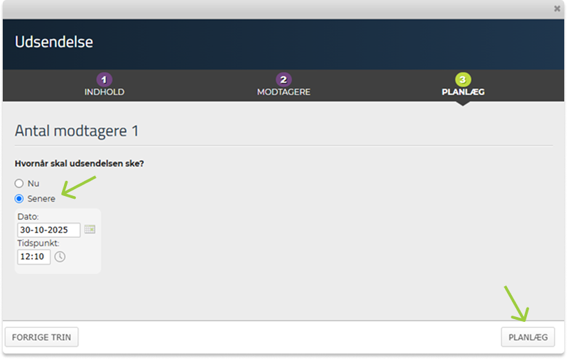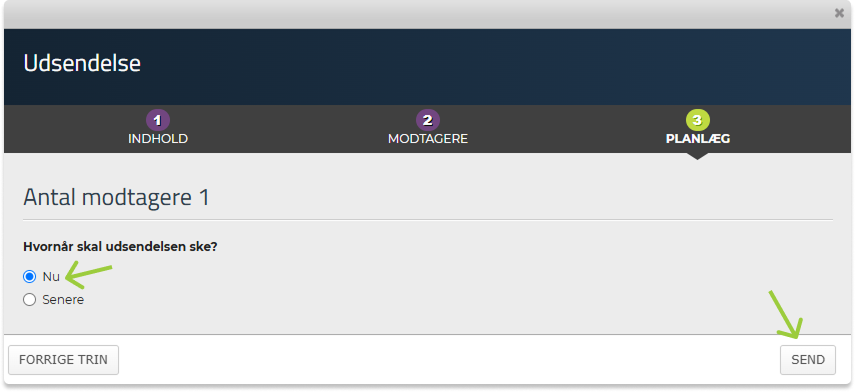 - Under Hvornår skal udsendelsen ske?, vælg Nu.