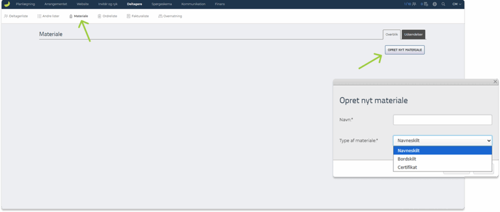 - Vælg nederst det relevante materiale i dropdown-menuen (hvis du har flere).