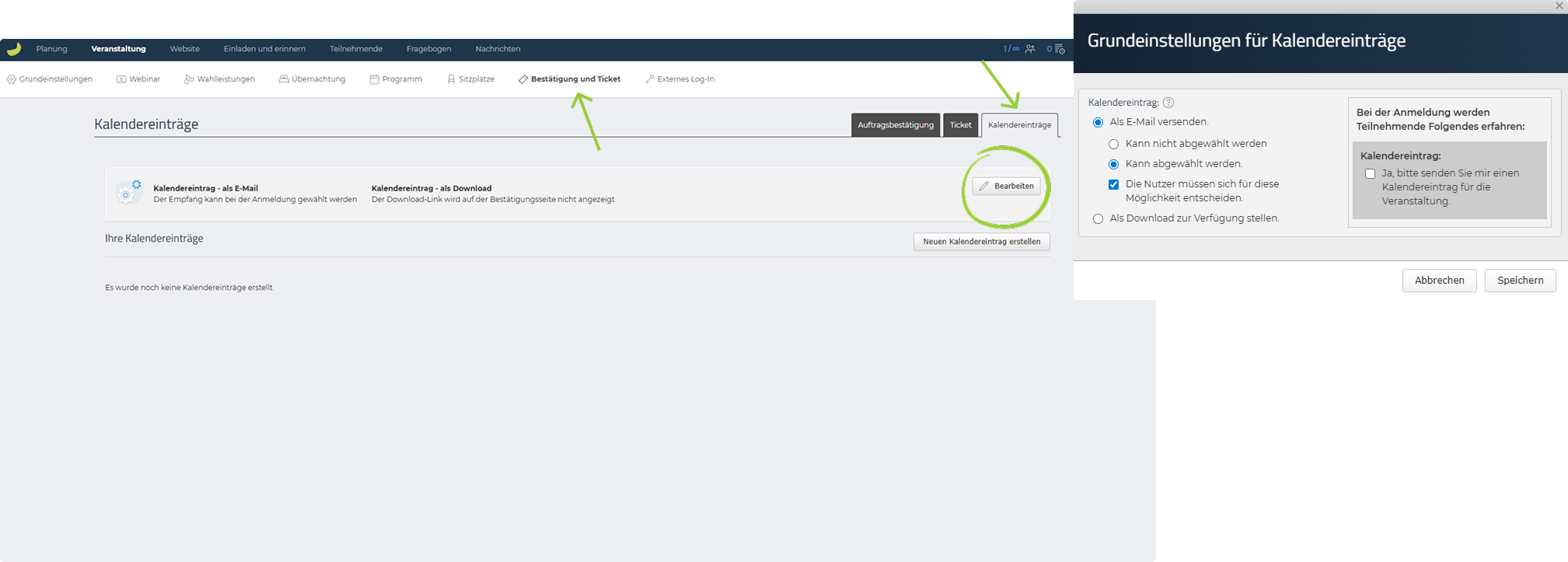 Wenn Sie auf Bearbeiten klicken, können Sie festlegen, wie die Teilnehmenden den Kalendereintrag für Ihre Veranstaltung erhalten sollen. Sie haben zwei Möglichkeiten: