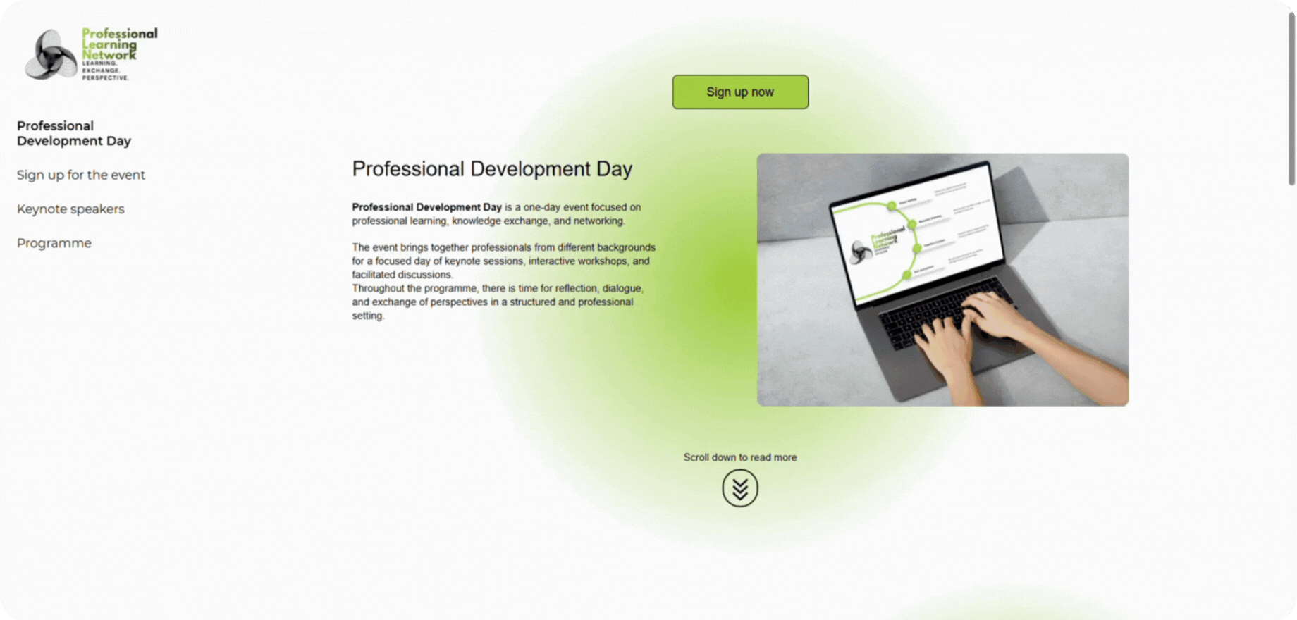 Exemplet fokuserar på att presentera ett omfattande program med detaljerade beskrivningar av varje programpunkt, så att besökare kan få en tydlig överblick över evenemangets innehåll innan de registrerar sig. Särskild vikt har lagts vid presentationen av talare, inklusive bakgrundsinformation som hjälper besökare att förstå vilka som medverkar i evenemanget.